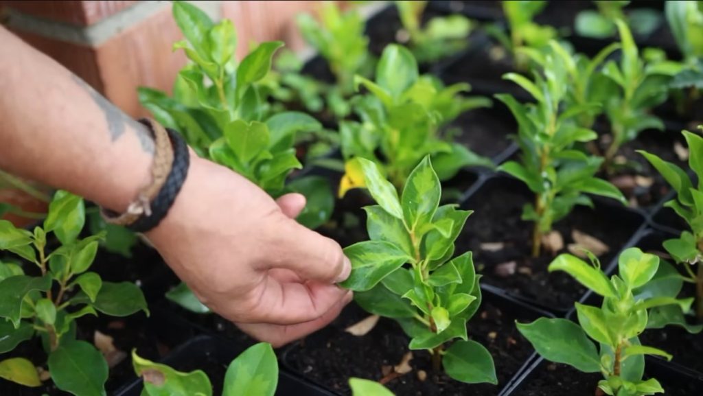 Sashiki significa que la planta procede de un esqueje. Gran parte de mi producción nace en el invernadero-esquejero de Kaeru-En 蛙園, con más de 60 bandejas de kanuma que ofrecen las condiciones óptimas para un enraizado fuerte y estable. Tras ese proceso, cada planta pasa a macetas individuales en una zona protegida y se adapta poco a poco a la intemperie. El resultado son ejemplares resistentes y trabajados desde su primer brote.